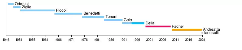 | 10 | Franco Ianeselli | 23 September 2020 | Incumbent | Independent (centre-left) |