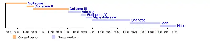Timeline of Grand Dukes of Luxembourg since 1815