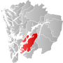 ![]() Bergen | County capital, is divided into eight boroughs, the only administrative subdivision within a municipality in the county. Established as a municipality 1 January 1838. Bergen landdistrikt was merged into Bergen in 1877, Årstad in 1915, and Åsane, Arna, Fana and Laksevåg in 1972. | Midthordland | 465 km² | 252,051 | ![]() |