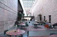 The atrium of the Joslyn Art Museum. Dale Chihuly's Chihuly: Inside and Out can be seen at the far end.