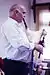 Abbos Kasimov, the premier percussionist from Uzbekistan, is playing his national instrument, the doira.