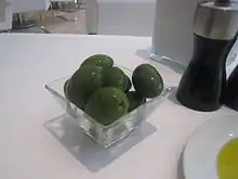 | Memeli | Turkey | a Turkish olive used for split green olives, green olives in brine, black olives and olive oil. Clingstone.[4] | |