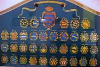 Reflecting the dual Romance and Slavic influence on Ragusan culture, most Ragusan noble families, as well as members of the citizen class, used both Romance and Slavic versions of their first and last names, especially since the Late Middle Ages onward, while the lower classes mostly only used Slavic names. Some used only one version of their family name exclusively, e.g. the noble families Natali and Zlatarić.[1] Since the official language of the Republic was always from the Romance language group, the official records record the last names almost exclusively in those versions, although in the older records the first names can be found in Slavic. Members of noble families, even those originally of Slavic descent, used the Slavic forms of their family names in an unofficial capacity in literary works written in Slavic, and in an official capacity only in treaties that the Ragusan State signed with its neighboring Slavic states in their language and script. In the noble class' everyday usage, most commonly the first name was in Slavic and the last name in Italian, a traditional practice which has continued until today, and transformed into official. When only the Romance version of a first or last name appears in the sources, modern Croatian and Serbian scientific literature very frequently translates it creating a new slavicized version, which often results in various errors due to insufficient knowledge of Ragusan traditions, e.g. erroneously using non-Ragusan Slavic form "Vinko" instead of Ragusan Slavic form "Vicko", or "Blaž" instead of "Vlaho", or incorrectly adapting a Romance version while ignoring actual Ragusan usage, e.g. "Natal" instead of "Božo", "Junije" instead of "Džono".[2]:20,21,23