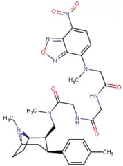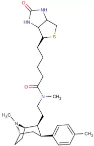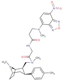 ![]() | para-phenylpropylphenyltropanel | -(CH2)3-Ph | 351 ± 52 | 1,243 ± 381 (113 ± 35) | 14,200 ± 1,800 (8,500 ± 1,100) | 3.5 | 40.4 |
