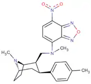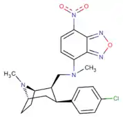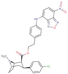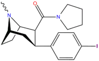 Phenyltropanes (PTs) are a family of chemical compounds originally derived from structural modification of cocaine. The main feature differentiating phenyltropanes from cocaine is that they lack the ester functionality at the 3-position terminating in the benzene; and thusly the phenyl is attached direct to the tropane skeleton with no further spacer (therefore the name "phenyl"-tropane) that the cocaine benzoyloxy provided. The original purpose of which was to extirpate the cardiotoxicity inherent in the local anesthetic "numbing" capability of cocaine (since the methylated benzoate ester is essential to cocaine's blockage of sodium channels which cause topical anesthesia) while retaining stimulant function.[lower-alpha 1] These compounds present many different avenues of research into therapeutic applications, particularly in addiction treatment. Uses vary depending on their construction and structure-activity relationship ranging from the treating of cocaine dependency to understanding the dopamine reward system in the human brain to treating Alzheimer's & Parkinson's diseases. (Since 2008 there have been continual additions to the list and enumerations of the plethora of types of chemicals that fall into the category of this substance profile.[2]) Certain phenyltropanes can even be used as a smoking cessation aid (c.f. RTI-29). Many of the compounds were first elucidated in published material by the Research Triangle Institute and are thus named with "RTI" serial-numbers (in this case the long form is either RTI-COC-n, for 'cocaine' "analog", or specifically RTI-4229-n of the subsequent numbers given below in this article)[lower-alpha 2] Similarly, a number of others are named for Sterling-Winthrop pharmaceuticals ("WIN" serial-numbers) and Wake Forest University ("WF" serial-numbers). The following includes many of the phenyltropane class of drugs that have been made and studied.