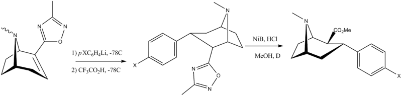 - Carroll, F. I.; Gray; Abraham; Kuzemko; Lewin; Boja; Kuhar (1993). "3-Aryl-2-(3′-substituted-1′,2′,4'-oxadiazol-5′-yl)tropane analogues of cocaine: affinities at the cocaine binding site at the dopamine, serotonin, and norepinephrine transporters". Journal of Medicinal Chemistry. 36 (20): 2886–2890. doi:10.1021/jm00072a007. PMID 8411004.
