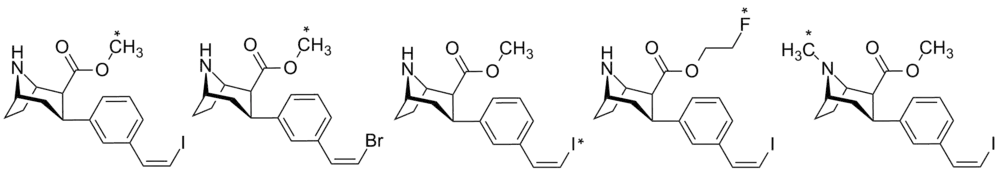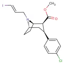 - Stehouwer, Jeffrey S. (2006). "Synthesis, Radiosynthesis, and Biological Evaluation of Carbon-11 Labeled 2β-Carbomethoxy-3β-(3′-(( Z )-2-haloethenyl)phenyl)nortropanes: Candidate Radioligands for in Vivo Imaging of the Serotonin Transporter with Positron Emission Tomography". Journal of Medicinal Chemistry. 49 (23): 6760–6767. doi:10.1021/jm060641q. PMID 17154506.