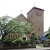 Roman Catholic | – | There was a church here from 1931, but the present building—"unassuming and unpretentious", but "a fine building" of high quality—dates from 1960–61 and was designed by prolific Catholic church architect Francis G. Broadbent in his favoured "North Italian Romanesque" style. The entrance is through an arcade, from the corner of which a prominent campanile-style tower rises. | [89][91] [92][34] |