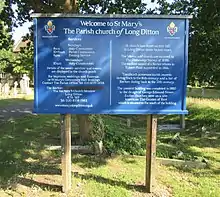 Cobham, Stoke d'Abernon, Thames Ditton and Walton-on-Thames each have ancient parish churches. At Cobham, St Andrew's Church retains its Norman tower, and much of the other work dates from the 13th, 14th and 15th centuries.[10] Parts of the chancel and nave at St Mary's Church in nearby Stoke d'Abernon are even older, dating from the Saxon period, and Roman brickwork has been reused in the walls.[11] The massive, low tower, chancel and some windows at St Nicholas' Church in Thames Ditton date from the 13th century, and the font is a century older.[12] St Mary's Church at Walton-on-Thames retains some Norman-era fabric, but much of the structure dates from the 14th and 15th centuries.[13] Esher's church, which existed by the late 13th century, was replaced by the "delightful [and] endearing" St George's Church in about 1540.[14]