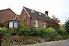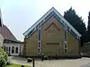 Protestant Nonconformist denominations found great support in Kent, especially during the 19th century,[24] and many of their chapels survive in the borough of Tunbridge Wells. In the similar sized neighbouring county of Sussex, 244 such chapels opened between 1818 and 1901, against 765 in Kent. Methodism was followed particularly strongly: 325 Methodist chapels (including Wesleyan, Primitive, Bible Christian and others) were built during that period, against 327 Anglican churches; Baptists and Congregationalists each gained over 150 new places of worship; and nearly 150 meeting rooms, chapels and halls for other denominations were opened.[24] The decline of Methodism since its Victorian heyday and the amalgamation of its various strands into one denomination[25] means that only three chapels are still in use in the borough, along with a shared Anglican and Methodist church at Paddock Wood. Former chapels, some of which closed as recently as the early 21st century,[26] are found in many villages. Calvinism, "the characteristic religion of rural Kent",[27] made its mark in places such as Matfield, Cranbrook, Lamberhurst and Southborough, each of which has a surviving Strict Baptist chapel. These are "typically small, neat, plain, porched and with a Hebrew name": Matfield's is called Ebenezer, as is a former chapel at Hawkhurst, and other closed chapels for Calvinistic Baptists include Providence (Cranbrook and Curtisden Green), Rehoboth (Royal Tunbridge Wells) and Jehovah Jireh (in a hamlet near Brenchley). The United Reformed Church, successor to the Congregational Church whose followers were so prevalent in the county in the 19th century, also retains three churches of its own and another shared with Anglicans. In Royal Tunbridge Wells, the vast Mount Pleasant Congregational Church (1845–48, with a huge Tuscan-columned portico and pediment of 1868) and an outlying chapel in the town's Albion Road were closed as the denomination based its worship around fewer, larger and better located churches.[28] Plymouth and Open Brethren, served by 19 meeting rooms across Kent by 1901,[24] have always been well provided for in the Tunbridge Wells area; three places of worship in use by World War II have been supplemented by others since the 1980s, including a large meeting hall at Five Oak Green.[29] Brethren worshippers' "attachment to makeshift premises" and "purposeful indifference to any form of pretension" in architecture[30] is in evidence in these modern buildings, but their oldest place of worship (the York Road Assembly of c. 1891) is a distinctive stuccoed Classical-style building.[31]