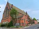 United Reformed Church | – | Architects Potts, Sulman and Hennings designed this simple red-brick church in 1899. Extensions were built in a similar style in 1907 (a schoolroom) and 1926 (a hall). A Mr Le Lacheur paid for the building, whose tiled roof is topped by a turret. | [32][67] [112] |