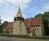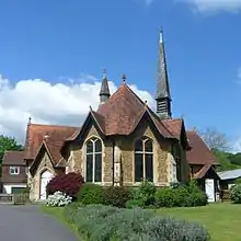 The next period of significant church-building came in the 19th century, by which time many of the centuries-old churches in the towns and villages had fallen into disrepair.[28] The Victorian era was characterised by the restoration of such churches, often by nationally prominent architects such as William Butterfield (Cranleigh),[29] Benjamin Ferrey (Farnham St Andrew,[30] Thursley)[31] and Henry Woodyer (Bramley,[32] Chiddingfold).[33] Also, many new Anglican churches were built in the late 19th century as large parishes were carved up and villages gained a church for the first time. Again, major architects of the era were often involved. Woodyer, who lived at Grafham, designed the church there in 1861–64,[34] Hascombe (1864)[35] and St James, Farnham (1876);[36] George Gilbert Scott worked on Farncombe (built in stages from 1847)[37] and Busbridge (1865–67);[38] Ewan Christian designed Tilford (1867)[39] and Churt (1868),[40] and Grayswood (1900–02) was by his pupil Axel Haig;[34] Benjamin Ferrey was responsible for St John the Evangelist Church, Hale, Surrey (1844),[41] C.H. Howell designed Shamley Green (1864);[42] A.R.Barker designed St Mark the Evangelist Church, Upper Hale, Farnham (1883) and the unusual Mediterranean-influenced church at Blackheath Village (1893–95) was by C.H. Townsend.[43]