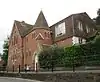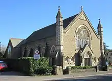 Protestant Nonconformism had several strongholds in Surrey, particularly in the west: Farnham has had numerous Nonconformist congregations since the 17th century,[44][45] and Godalming was "a hotbed of radical Protestant Nonconformity".[46] Some denominations were more successful than others: Surrey was part of the so-called "Methodist Wilderness", where "implacable opposition" to Wesley's mission was experienced until the early 20th century—especially in rural areas—and therefore few Methodist chapels became established. In contrast, the founding of the (initially interdenominational) Surrey Mission in 1797 gave great impetus to Congregational, Baptist and Independent groups throughout the 19th century, leaving a legacy of dozens of chapels, schools and associated institutions. Many congregations formed themselves into churches which have survived into the 21st century.[47] Congregationalism was especially prominent: Godalming Congregational Church looked after "out-stations" (mission chapels) in Bowlhead Green, Elstead, Eashing, Wormley and Milford;[48] Guildford's church was responsible for founding or maintaining the chapels at Compton, Shamley Green and Blackheath Village;[49] and the church at Farnham administered mission chapels at Lower Bourne and Wrecclesham.[50] General Baptist congregations developed in the late 19th century at Chiddingfold and Dunsfold, both with the help of local resident Samuel Barrow jp,[51] and one was founded in Godalming around the same time.[52] In the late 20th century, two former Congregational chapels—at Ewhurst and Milford—were taken over by Baptist groups,[53][54] and a large Baptist church was built in Farnham in 1975.[55] Strict Baptists had congregations at Cranleigh,[56] Hale[57] and Farnham;[58] the first two subsequently adopted a General Baptist character, and Park Lane Chapel at Farnham (which was founded by an émigré Polish Jew who converted to Christianity)[58] is no longer in religious use.[59] A Strict Baptist chapel was founded in 1862 in Haslemere[60] and remained in use until 2017.[61] Methodism was most successful in the far southwest of the county. The Methodist Statistical Returns published in 1947[note 2] recorded the existence of chapels with Wesleyan Methodist origins at Cranleigh, Farnham, Godalming, Grayshott, Hale, Hascombe, Haslemere, Hindhead and Rowledge and a single ex-Primitive Methodist chapel at Badshot Lea.[63] Only the late 19th-century churches at Farnham,[64] Hale[59] and Rowledge[65] and those at Godalming (1903)[66] and Cranleigh (1904)[67] are still in use. Haslemere's original chapel was sold to another congregation in 1972 when a larger new church opened.[68] The former Badshot Lea Primitive Methodist Chapel survives in secular use.[69] The chapels at Farnham and Godalming are now home to joint Methodist and United Reformed congregations.[70][66]