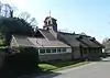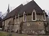 In contrast to Nonconformist denominations, Roman Catholicism was late to develop a presence in the area now covered by Waverley borough. At the end of the 19th century Captain W.H. Rushbrooke of Bowlhead Green, "a very faithful supporter ... and a great benefactor [of] the Catholic Church",[71] helped to found and pay for St Edmund King and Martyr's Church at Godalming and the predecessor of St Joan of Arc's Church at Farnham.[72] Until that time local Catholics travelled to Sutton Place near Woking[73] or (from 1860) to Guildford.[74] Catholic churches at Haslemere and Bramley were originally within Godalming's vast parish, and Milford's church is still within it. The Hindhead area was served by a private chapel from the 1930s until St Anselm's Church was built in the 1950s.[75] The eastern part of the borough was served by the friary church at Chilworth from 1945 until the Franciscan friars took the decision to withdraw in 2010.[76]