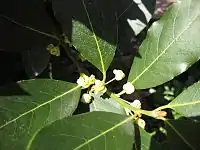 | Laurus nobilis | Bay laurel | Aqueous extracts of bay laurel can be used as astringents and even as a reasonable salve for open wounds.[113] In massage therapy, the essential oil of bay laurel is reputed to alleviate arthritis and rheumatism, while in aromatherapy it is used to treat earaches and high blood pressure.[114] | ![]() |