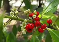 | Crataegus monogyna and Crataegus laevigata | Hawthorn | Fruit has been used for centuries for heart disease. Other uses include digestive and kidney related problems.[62] | ![]() |