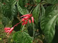 | Erythroxylum coca | Coca | Used as coca tea or chewed, traditionally as a stimulant to overcome fatigue, hunger, thirst, and altitude sickness.[73] Also used as an anesthetic and analgesic.[74] | ![]() |