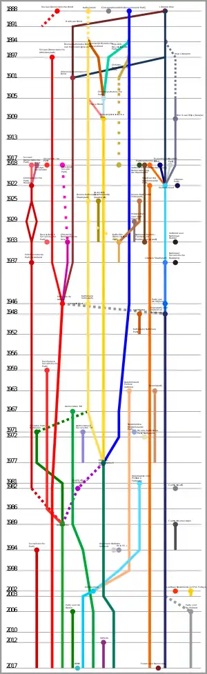 | Political party | Main ideology | Position | Leader | American affiliation | ||