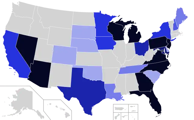 This list excludes trips made within Washington, D.C., the U.S. federal capital in which the White House, the official residence and principal workplace of the president, is located. Also excluded are trips to Camp David, the country residence of the president. International trips are included. The number of visits per state or territory where he traveled are:
