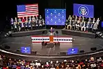 | Des Moines | Arriving via Des Moines International Airport, President Trump held a Keep America Great Rally at the Knapp Center on the campus of Drake University.[17][18] | |||