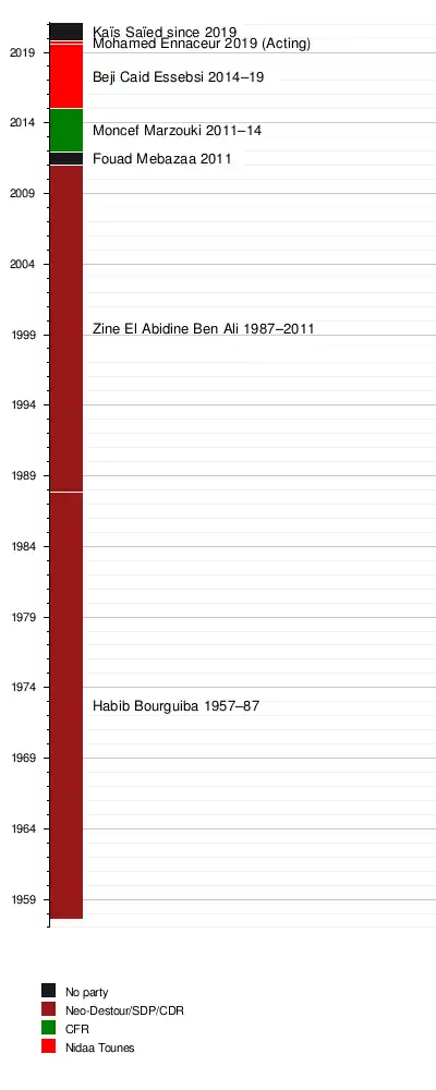 Tunisia has had seven presidents since the proclamation of the republic on 25 July 1957: