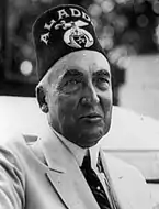 Photograph of Warren G. Harding wearing Masonic Shriner's fez