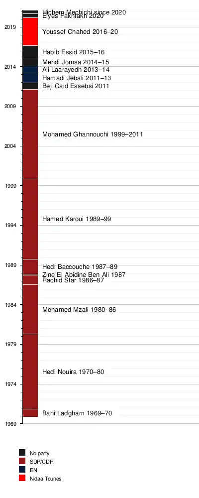 SDP | 1969 | Habib Bourguiba | |