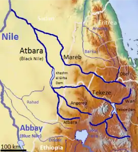 - Mareb River (or Gash River) (only reaches the Atbarah in times of flood)