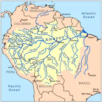 The list is arranged by drainage basin, with respective tributaries indented under each larger stream's name and ordered from downstream to upstream. Mato Grosso is divided by those streams that flow north to the Amazon and east to the Tocontins rivers and those that flow south to the Paraná river. All rivers in Mato Grosso ultimately drain to the Atlantic Ocean.