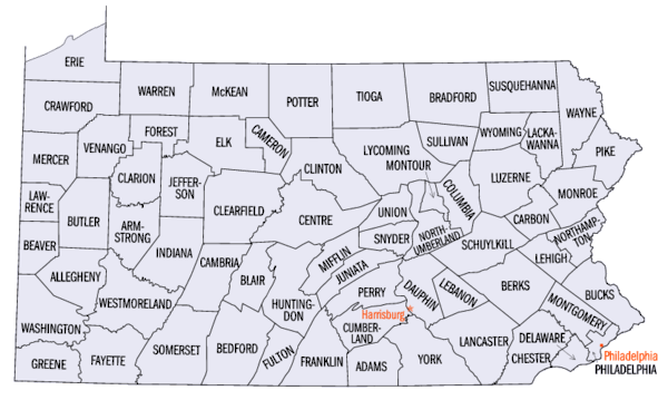 The article for each Pennsylvania county with more than one school district includes a map showing all public school districts in the county.