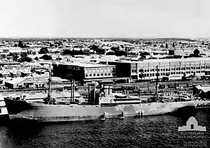 - Koondooloo 524 grt, 191.7 feet (58.4 m) X 35.7 feet (10.9 m) X 14.8 feet (4.5 m): Acquired for Southwest Pacific Area permanent local fleet, Small Ship Section, a double ended vehicular ferry built in Scotland in 1924 for Sydney Ferries Limited and converted in 1937 into a show/excursion boat with dance floor and 1,700 passenger capacity. Converted by the Army from coal to oil and fitted with a 30-ton boom, Koondooloo (S-181) was used as a workboat in New Guinea servicing amphibious vehicles and vessels. Reconverted to a vehicular ferry 1951 and wrecked while under tow to Philippines in 1972.[7][24]