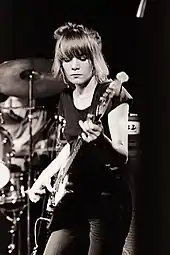 In 1983, the band parted ways with Eno and released their fifth album, Speaking in Tongues (1983).[1] The album continued the rhythmic innovation of Remain in Light, but in a more stripped-down, rigid pop song structure.[1] The album also contained the band's first and only top ten hit, "Burning Down the House".[13] The band's sixth album, Little Creatures (1985), marked a major musical departure from their previous albums – its songs being straightforward pop songs mostly written by Byrne alone.[1][14] After Little Creatures, the band released True Stories (1986), an album containing songs from Byrne's film of the same name.[1][15] Notable songs from the album include one of the group's biggest hits, "Wild Wild Life", and "Radio Head", a song from which the English rock band of the same name took their name.[15][16] Two years later, Talking Heads released their final album, Naked.[1] The album marked a return to the experimentation and styles of their Eno albums, most notably Remain in Light.[1][17] After Naked, the band went on a hiatus; formally announcing their breakup three years later in 1991.[1] Their final release was the song "Sax and Violins", released on the Until the End of the World soundtrack that same year.[18]