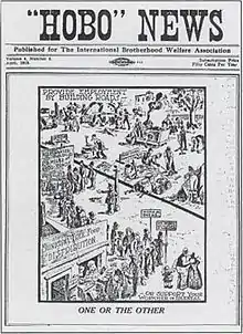 The cover of the Hobo News in the late 1910s, published by the International Brotherhood Welfare Association