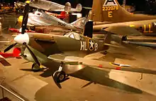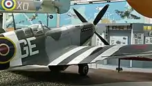 - Spitfire LF Mk.XVIe RR263. Built in 1944 and delivered to the RAF that year with 2nd Tactical Air Force. The Spitfire was loaned to Vickers Supermarine for experimental reasons in 1949 before moving to storage. Used as a static backdrop of for the Reach for the Sky movie and later was on a plinth at RAF Kenley as TB597, codes GW-B. Later overhauled and repainted again as TB597 as GW-B before being put on display at Musée de l'Air, Le Bourget.[45]
