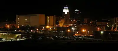 Skyline of Durham at night in 2003