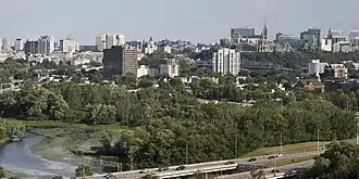 This is a list of the tallest buildings in Ottawa-Gatineau over 90 m (295 ft) tall. Despite Ottawa-Gatineau's size and role as Canada's capital region, its buildings are not particularly tall. Until 1965, buildings in downtown Ottawa were limited to 45.5 metres (149 ft) so that the Peace Tower, part of the Parliament Buildings, could dominate the skyline.[1] The National Capital Region has a complicated system of protected views that is governed by the National Capital Commission and adhered to by the City of Ottawa.[2] Protected view planes limit the height of buildings in certain areas of the downtown core of Ottawa to ensure clear sight of Parliament Hill.