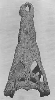 Fossilized skeleton of the Eocene crocodilian Boverisuchus- †Boverisuchus vorax – type locality for species