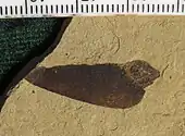 Fossilized wing and holotype specimen of the Eocene lacewing Ainigmapsychops- †Ainigmapsychops inexspectatus – type locality for species[6]