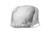 Fossilized head of the Silurian eurypterid ("sea scorpion") Waeringopterus- †Waeringopterus cumberlandicus