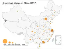 The 100 busiest airports in China in 2000 ordered by total passenger traffic, according to the CAAC report.[20]
