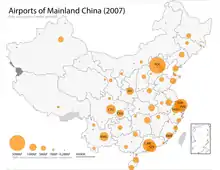 The 100 busiest airports in China in 2007 ordered by total passenger traffic, according to the CAAC report.[13]