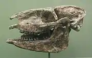 Fossilized skull of the Eocene-Oligocene three-toed horse Miohippus - Mustela