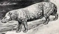 Restoration of the Miocene hippopotamus-like oreodont Promerycochoerus both onshore and in the water. Robert Bruce Horsfall (1913). - †Protolabis