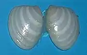 Exterior of the shell of a modern specimen of the Early Ordovician-modern marine bivalve Nucula - Odobenus