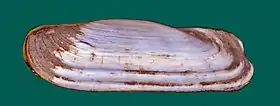 Exterior and interior of the shell of a Tagelus marine bivalve- †Tagelus plebeius