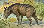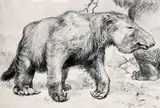 Life restoration of the Paleocene pantodont mammal Titanoides- †Titanoides gidleyi – or unidentified comparable form