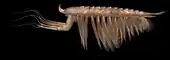 Life restoration of the Cambrian arthropod Canadaspis (left)- †Canadaspis perfecta – or unidentified comparable form