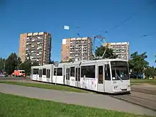 A modern tramway AKSM-843 in Minsk