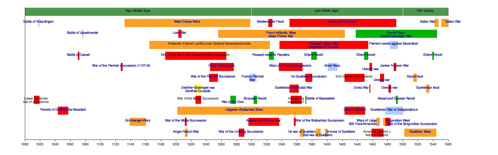 | 1132 | 1297 | West Frisian Wars[3][4][5] | West Frisians | Hollandic victory