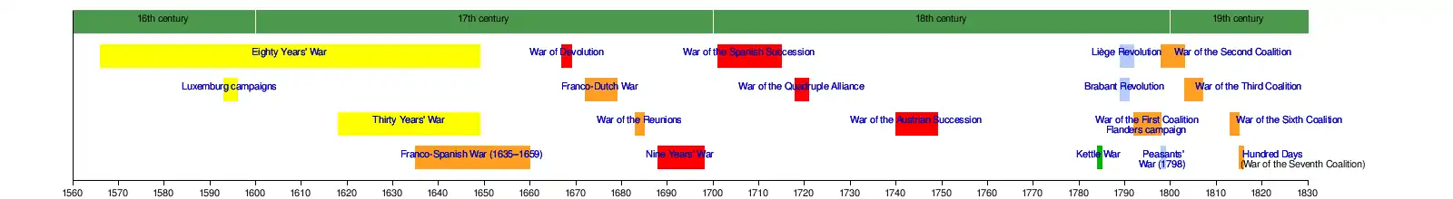 This is a list of wars that occurred in the southern Low Countries between 1560 and 1829.
